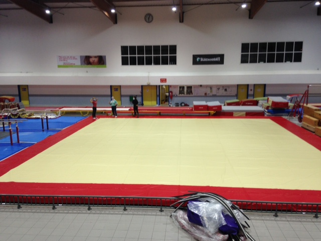 Actualités Novembre 2020 Installation de la nouvelle bâche de protection du praticable pour les gymnastes